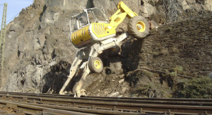sind für unsere Schreitbagger kein Problem. Auch steile Hänge, an denen " normale " Bagger scheitern,